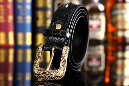Dragon Pattern Buckle Crocodile Backbone Skin Belt, Eastern Belt for Men